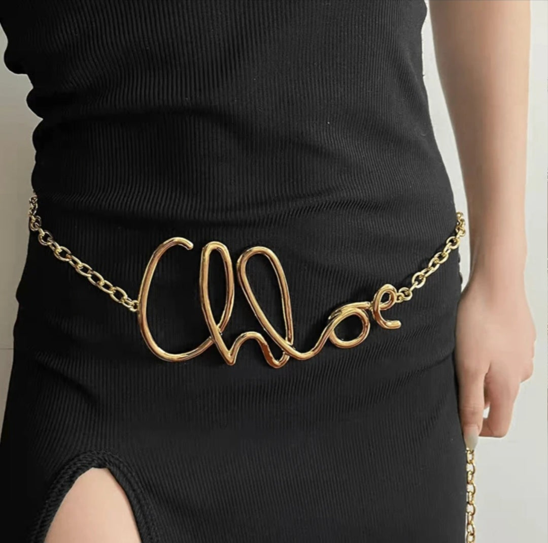 Introducing our chic and stylish letter chain belt, made with high-quality zinc alloy. Elevate all your favorite outfits year-round with this versatile accessory. Upgrade your fashion game with this must-have piece that adds a touch of elegance to any look.