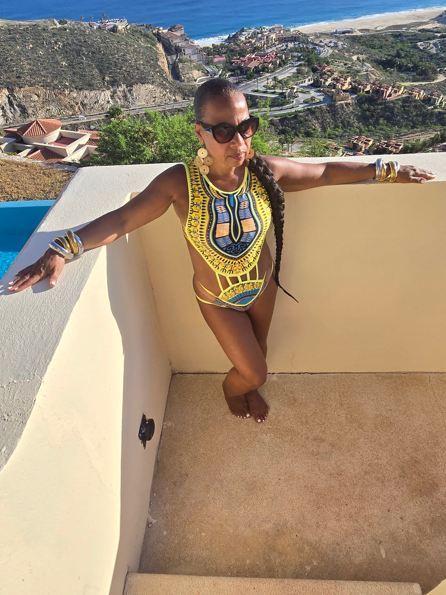 Channel those wanderlust vibes with these dreamy swimsuit. The bottom features a low-rise waist, high side cutouts, a fab geo print, and a cheeky fit. Complete look with the a bold choker and cuff  to take the beach by storm!